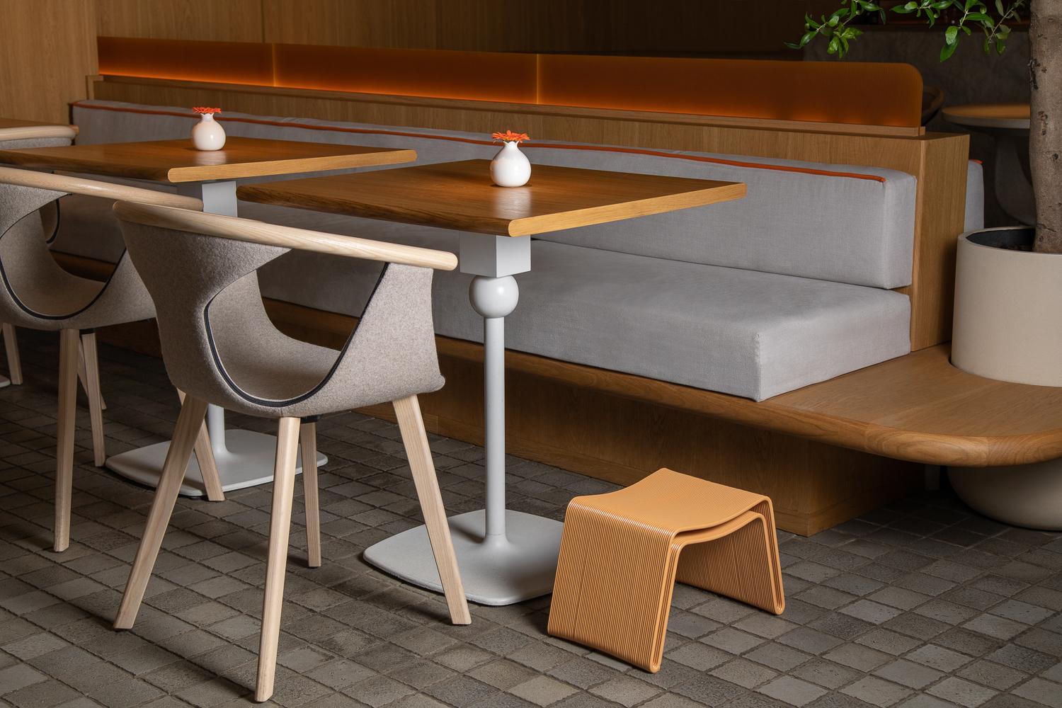 Именно из этого материала при помощи технологии 3D печати в студии Eburet была создана мебель для ресторанов – подставки под сумки и дизайнерские стулья для нового проекта «Кофемания Bez Tarelok» в Новинском пассаже, который откроется этим летом.