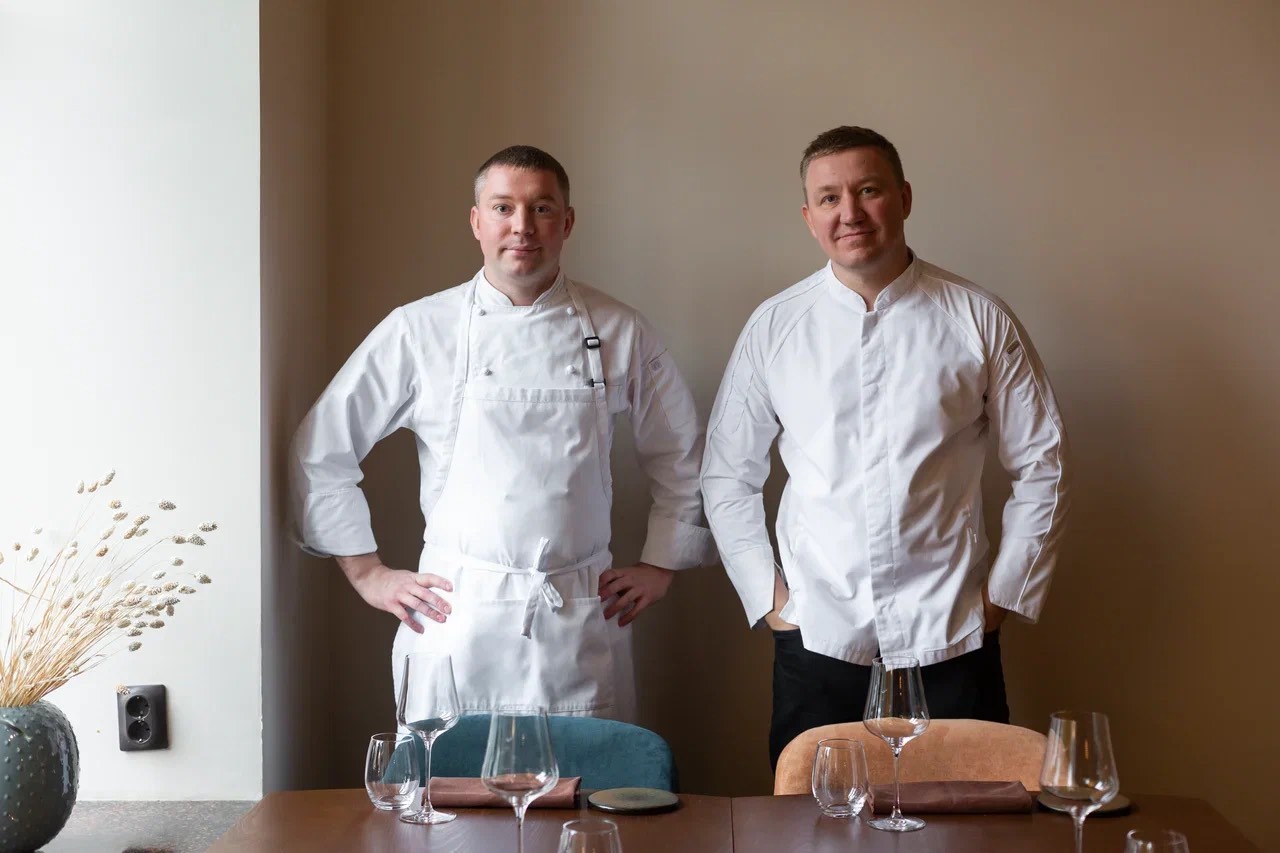 Для гастрольного ужина в «Гранд Кофемании» братья Гребенщиковы приготовили специальное меню из шести блюд, построенное вокруг локальных продуктов и сезонных вкусов.