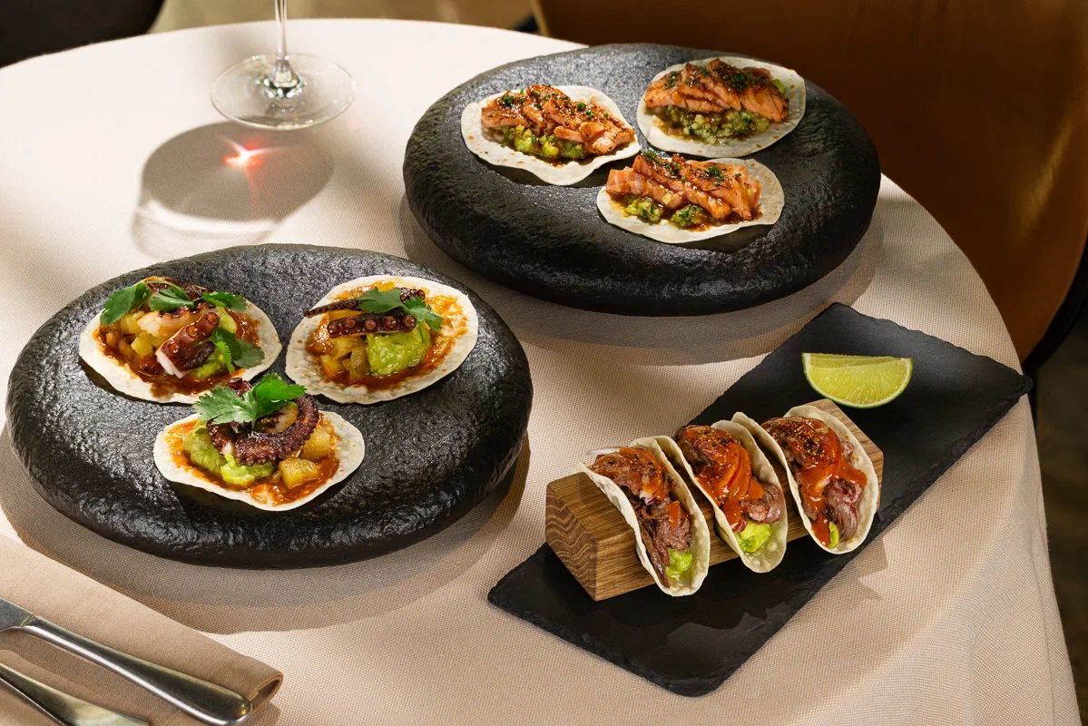 Традиционно тако — это мексиканское блюдо, представляющее собой тортилью с разнообразной начинкой. В аутентичном рецепте её готовят с говядиной, курицей, сыром, овощами или морепродуктами, добавляют сальсу, сметану или гуакамоле. Тако, давно ставшие визитной карточкой «Жажды крови», теперь обретают новую форму. К культовым позициям меню добавляются изысканные интерпретации, в которых классика встречается с новаторским подходом бренд-шефа Павла Поцелуева.