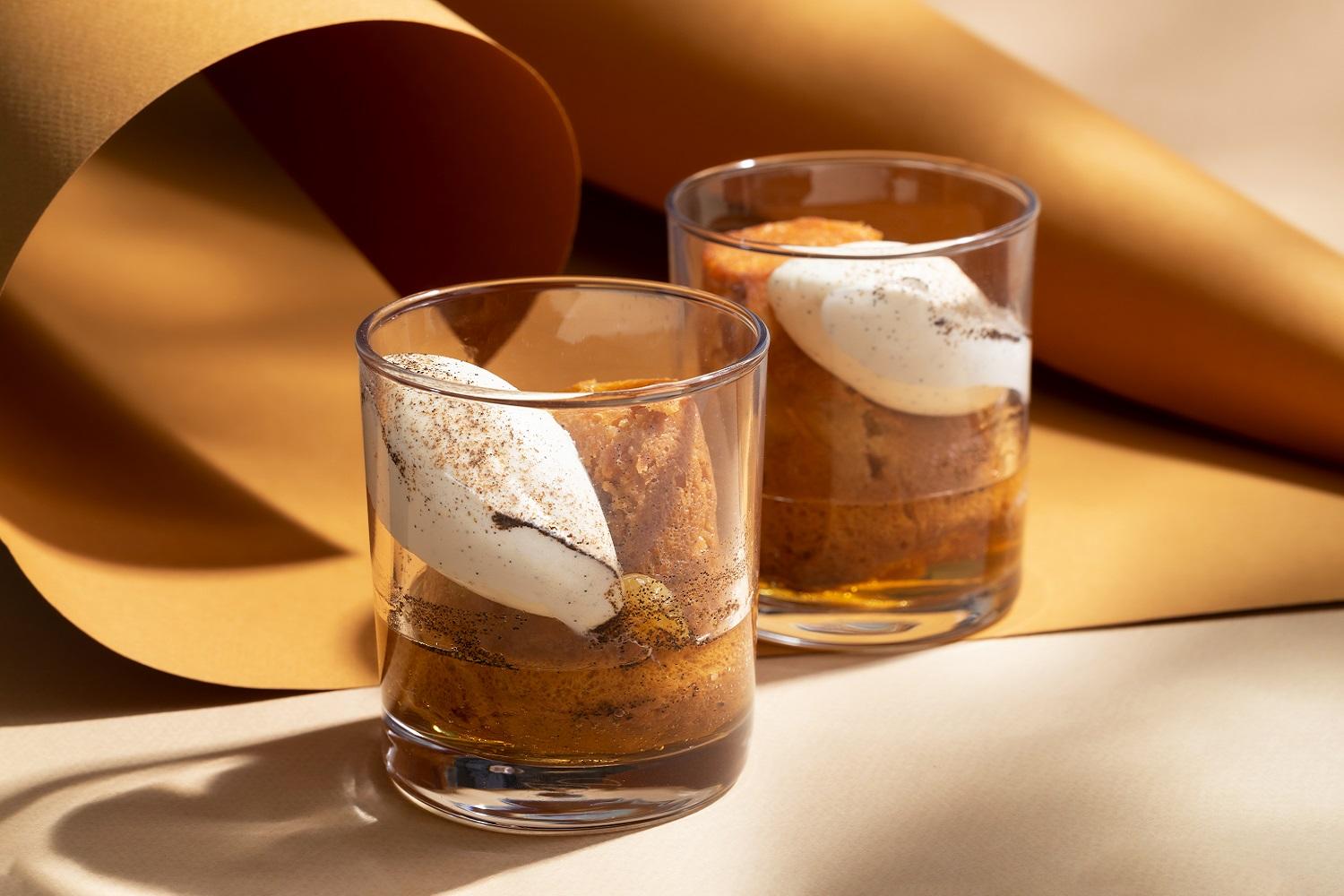 Десерт «Ром-папа» является твистом на классическую ромовую бабу. В основе — нежная бриошь с изюмом и апельсином, пропитанная ромом, которая дополняется ванильным кремом с рикоттой. В меру сладкий, станет отличным дополнением к подарку на 23 февраля.