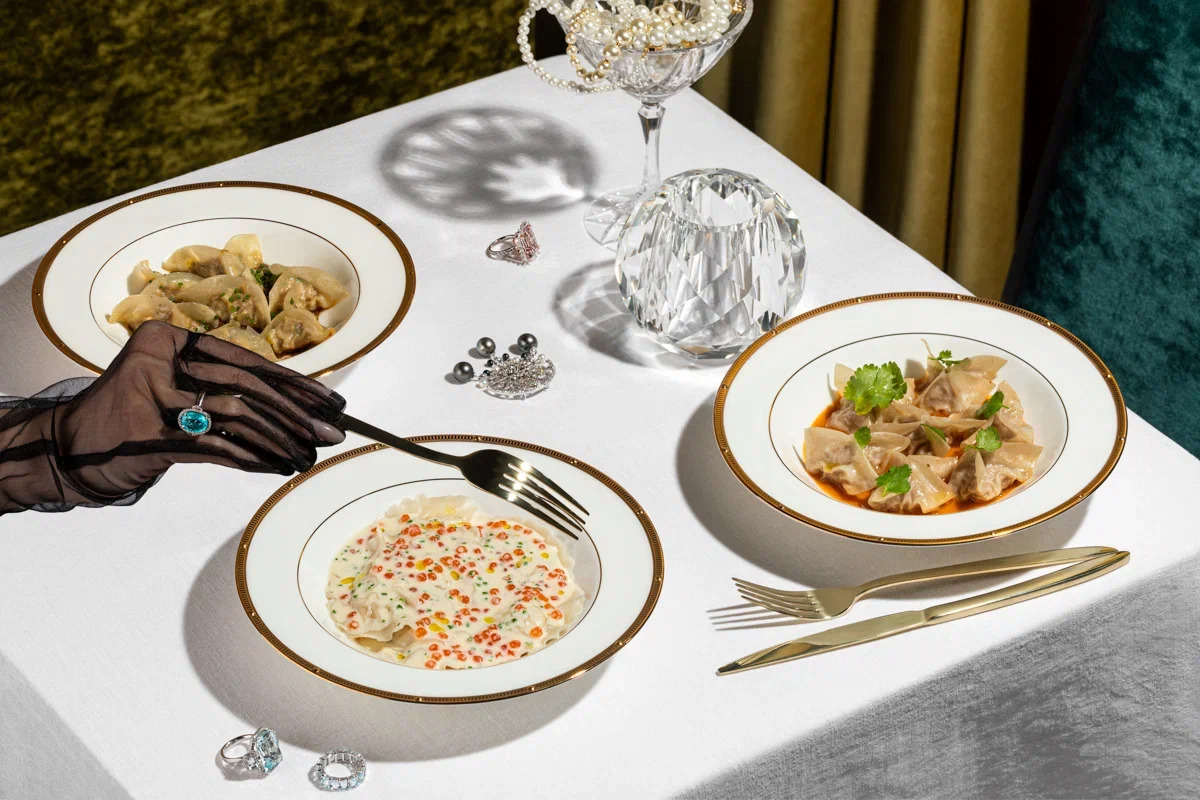 В тончайшем полупрозрачном тесте спрятались гастрономические впечатления шефа из разных стран. Здесь и фуа-гра с курицей и трюфельным соусом — оммаж традиционной французской кухне, и краб с лимонным соусом, напоминающий о кулинарных традициях Дальнего Востока, и судак с икорным соусом — блюдо, навеянное русской кухней.