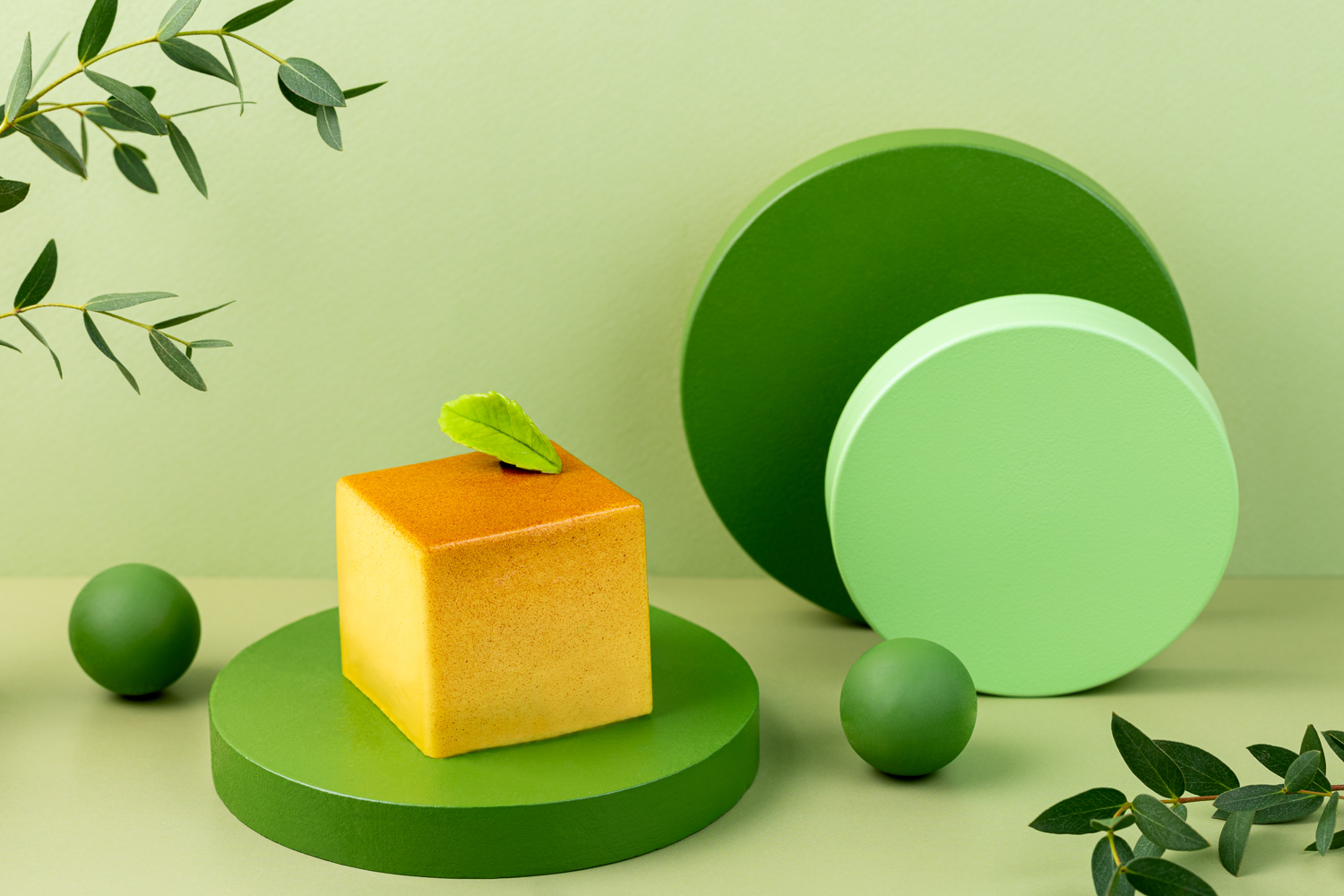 Новый десерт воплощает идею восстановления лесов — естественной защиты нашей планеты от пагубных последствий экологических проблем. Кубическая форма — олицетворение пустынной, обезвоженной земли, а маленький зелёный листочек — символ нового начала и силы природы.