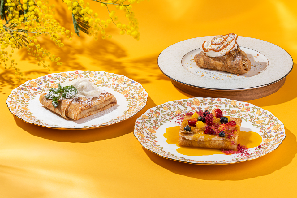 На сладкое мы приготовили блин «Баноффи», вдохновлённый одноимённым английским пирогом. Блин, щедро смазанный карамелью, дополняется кусочками свежих бананов и шоколадно-ореховой крошкой, а затем подаётся с шапкой воздушного крема из маскарпоне и солёным арахисом. Традиционный блин с творогом предстанет в меню в авторской интерпретации: с мангово-ягодным соусом и хрустящим малиновым крамблом.
