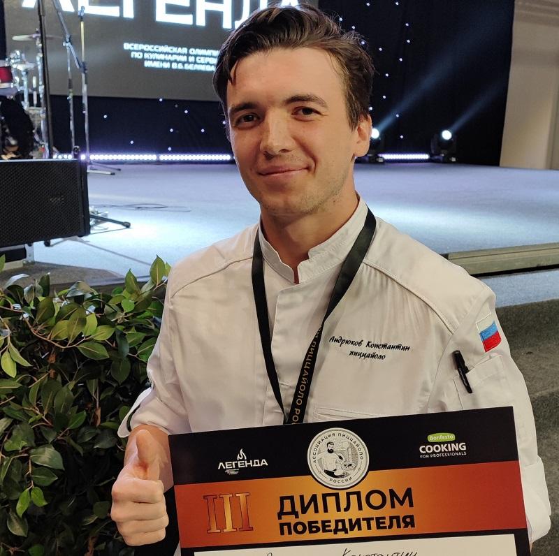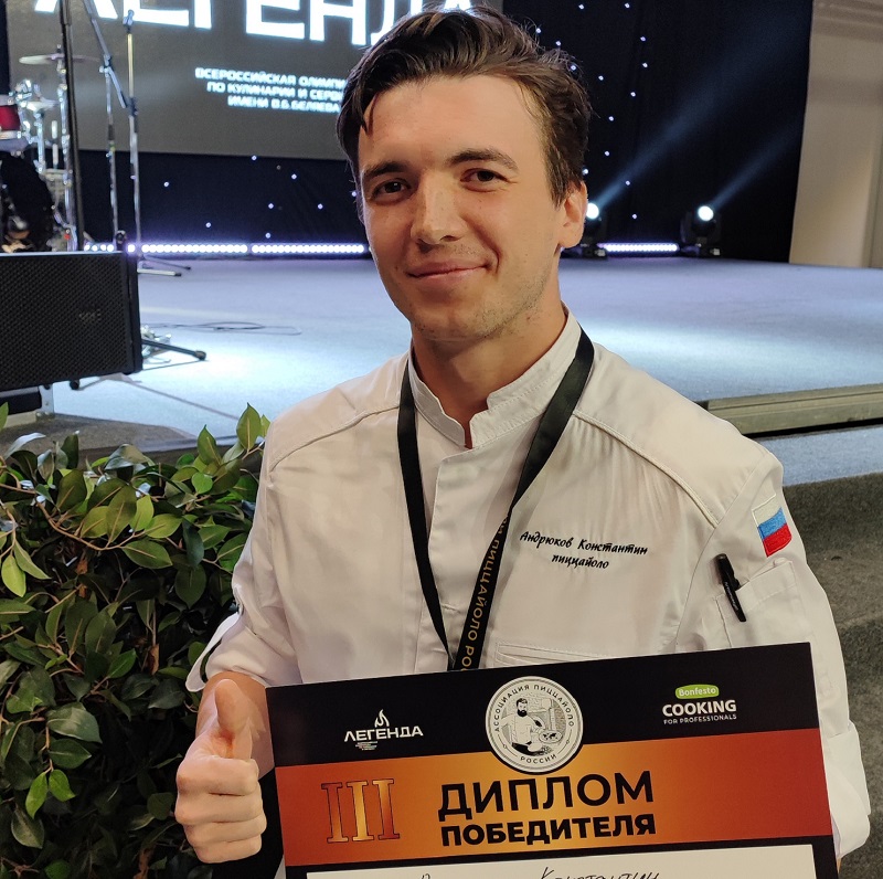 Константин Андрюков, пиццайоло ресторана Barmalini, занял третье место в номинации «Авторская пицца», доказав, что в Barmalini готовят одни из самых вкусных пицц в России. Он создал пиццу с камчатским крабом, щучьей икрой, перечным соусом, муссом из авокадо и сливочным сыром – такая пицца получила максимальный балл в категории «Вкус». В качестве оформления Константин использовал настоящее сусальное золото.